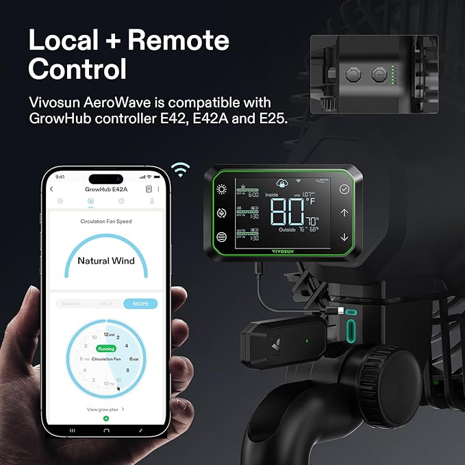 • Smart Control with GrowHub: Compatible with the Vivosun GrowHub E42/E42A/E25 for remote app control; Syncs with SGS (Smart Grow System) to operate with other connected devices and optimize your growing environment