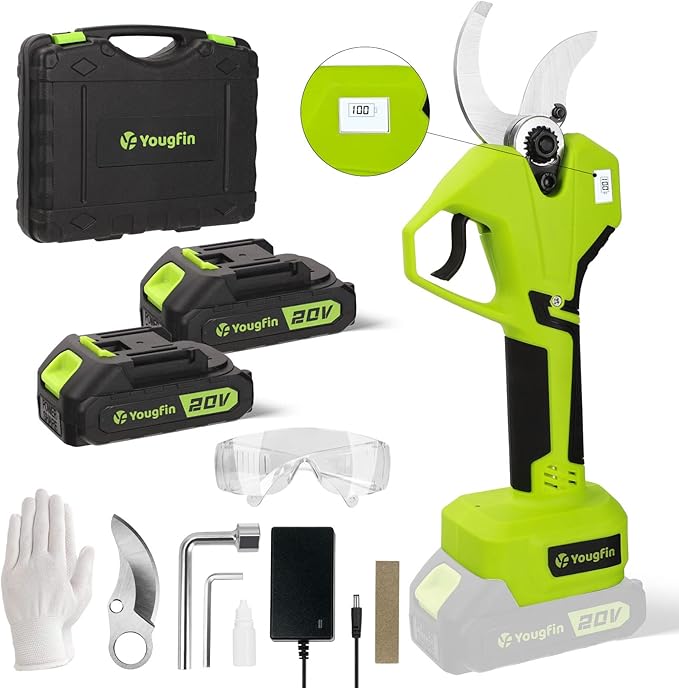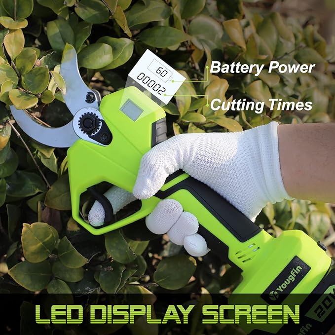 • 【LCD Display & Precision Cutting】: Our Yougfin electric pruning shears features an LCD display, indicating the number of cuts and remaining battery life. With its ergonomic design, it offers a comfortable grip, making it easy to maneuver around branches without straining your wrists.