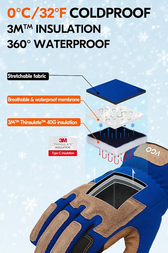 • 360° BREATHABLE & WATERPROOF, 0℃/32°F COLDPROOF - The waterproof but breathable TPU lining along with the 3M Thinsulate C40 insulation lining to ensure our gloves for stay-dry comfort and traps warm air to keep your hands warm