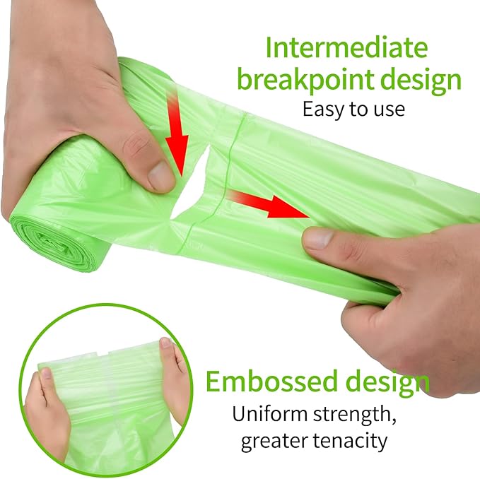 • Biodegradable Trash Bags - No smell, non-toxic and eco-friendly (break down quickly in industrial compost facilities)