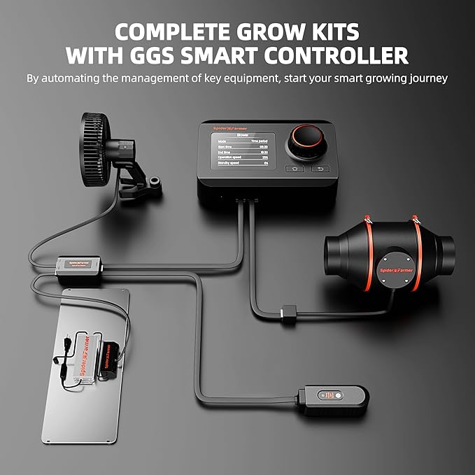 • SMART ENVIRONMENTAL CONTROLLER: It integrates with various monitoring devices, including temp/humidity/light sensors, and is managed via the Spider Farmer app or manually operated. You can easily customize the light with 0%-100% dimming, grow cycles timer on/off schedule, adjust inline fan speed control over airflow, clip fan running speed & oscillating head angle. Ensures your plants thrive under optimal conditions