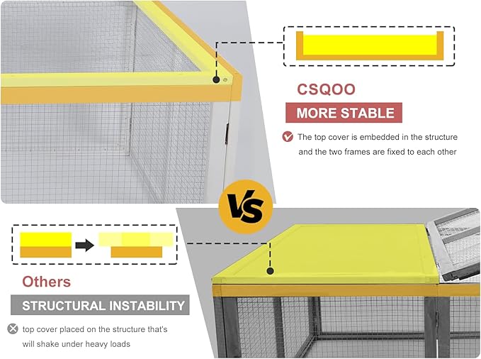 • Versatile Poultry Enclosure: It can be placed in the chicken house built by the family to isolate the hens and chicks, or as an extension space outdoors to cooperate with other chicken houses【pls measure its size】, If consider changing weather (such as sunshade, windproof and rainproof), you can choose our chicken coop run with cover.