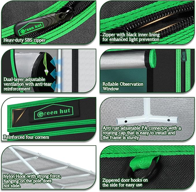 • LIGHT PROOF ¡ª The large heavy duty Zippers & 1.5" ribbon protect the tent from light leaking and ensure durability and long-lasting use. Let you control the climate and lighting so you can grow any plant in any place safely and easily