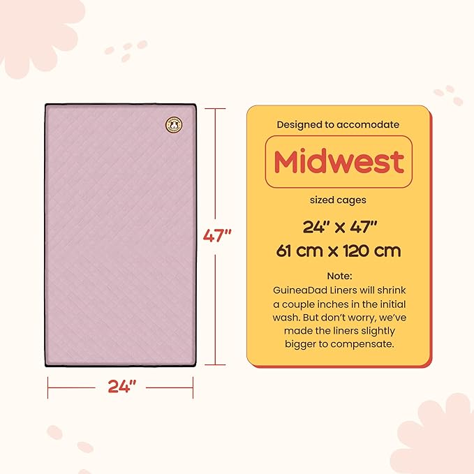 GuineaDad Premium Liner – Fleece Guinea Pig Cage Liner – Ultra-Plush Reusable Fleece Bedding with Waterproof Bottom – (Blush)