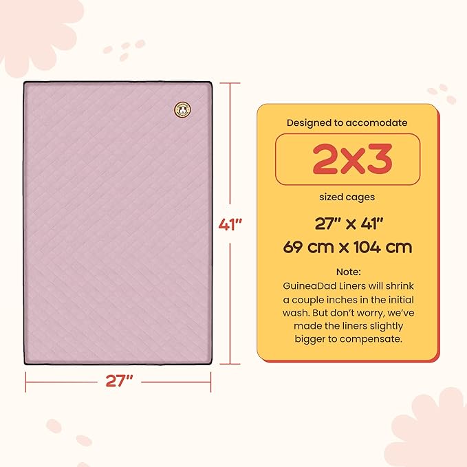 GuineaDad Premium Liner – Fleece Guinea Pig Cage Liner – Ultra-Plush Reusable Fleece Bedding with Waterproof Bottom – Extra Absorbent Liner for 2x3 C&C Cage (Blush)