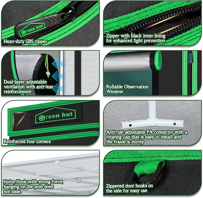 • LIGHT PROOF --- The large heavy duty Zippers & 1.5" ribbon protect the tent from light leaking and ensure durability and long-lasting use. Let you control the climate and lighting so you can grow any plant in any place safely and easily