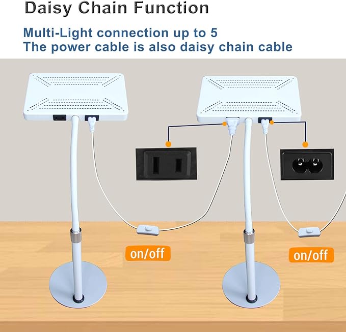 • 【Daisy Chain Function】This led grow lights for indoor plants designed with an input plug and an output outlet. You can connect multi-lights max 4 units together by daisy chain function but only need one outlet.