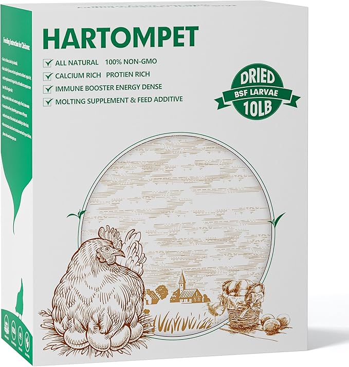 • Healthier Feathers & More Eggs: Elevate flock's well-being with Hartompet. These grubs promote vibrant feathers, fortified eggshells, and enhanced energy levels. Chickens will flourish and lay abundant eggs.