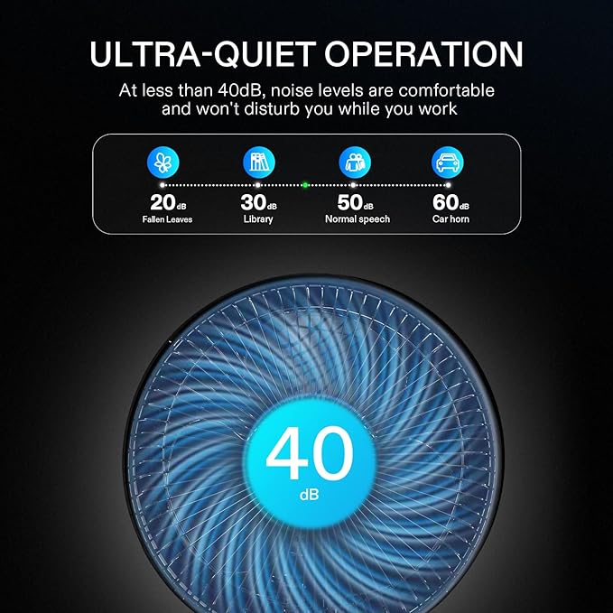 • Strong Airflow & Low Noise: At just 40 dB at its loudest, this fan runs ultra-quiet, and with an upgraded 20W copper motor still produces powerful airflow for coolness you can feel even from a distance