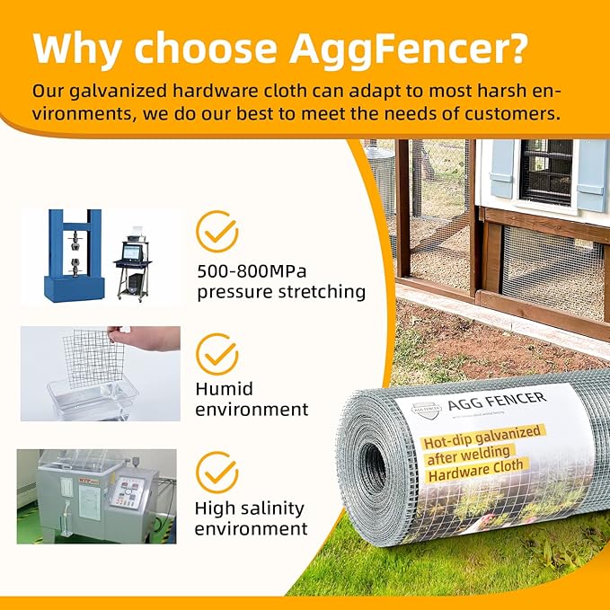 • Multipurpose: Our hardware cloth is suitable for chicken wire fence or other poultry fences, rabbit/cat/dog fences, backyard snake and rat protection fences, garden flower beds, orchard tree protection boards, soil screens, balcony protection, gutters, eaves, gutter guardrails, home decoration works, handicrafts making, etc.