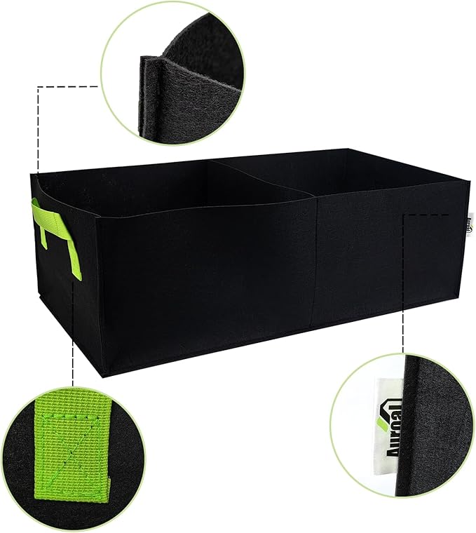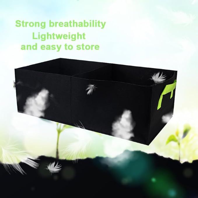 • *The rectangle grow bag has 2 compartments, each compartment is 30*30*20cm (width, length, height)with great dimension and depth. And the growing bags are easy to separate different types of plants, or crops planted at different times