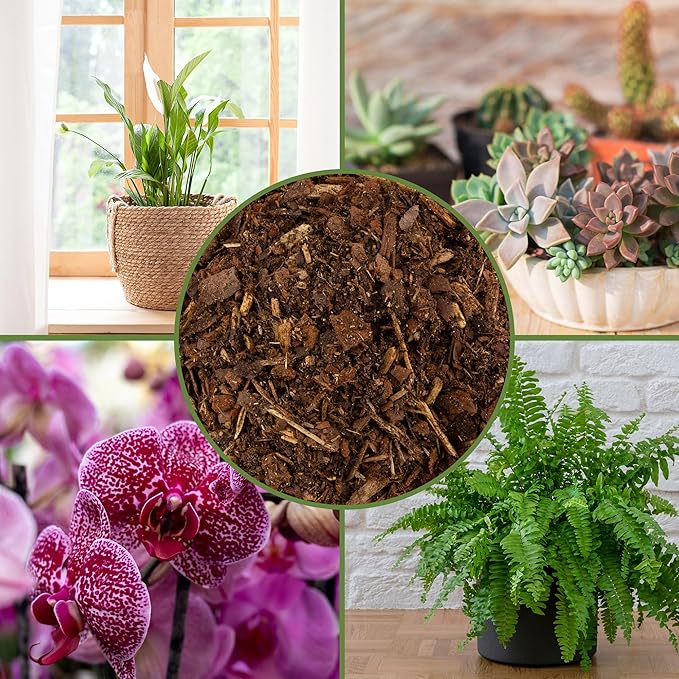 100% Natural Pine Bark Mulch Nuggets (4 Quarts), Small Mulch Chips for Indoor/Outdoor Container Gardening, Ideal for Soil Supplement, Houseplant Mulch, and Terrariums