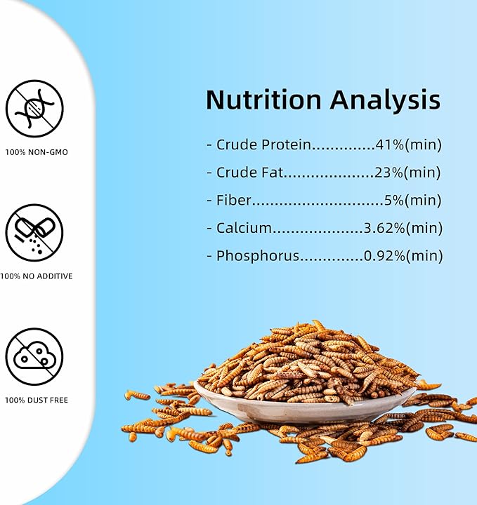 • Black Soldier Fly Larvae is rich in calcium, it’s contain at least 85x more calcium than dried mealworms and with over 41% protein, this high protein treats allows your chickens to eat healthier, lay bigger eggs and produce more, the best chicken treats for laying hens