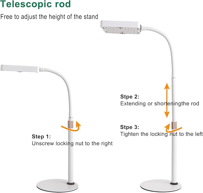 • Desk Grow Light with Stand: Adjustable Tripod Stand 16"-24", you can adjust the height of the lamp just as you need.