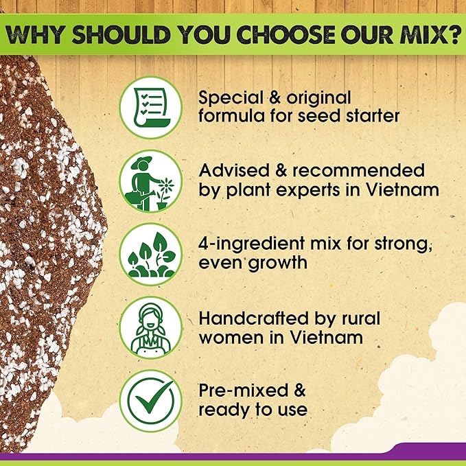 • 🌳 Versatile Purpose: Our seedling starter soil is perfect for a variety of applications, from potting soil seed starter to seed starting mix for vegetables. This versatile soil starter for seeds adapts to your gardening needs, ensuring success in diverse planting projects.