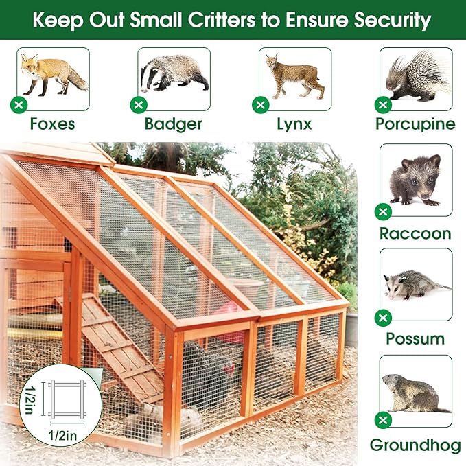• Efficient Safety Guarantee: By utilizing flexible galvanized welded wire mesh screens, we construct a closed protective cage that effectively prevents harm to poultry such as chickens, ducks, rabbits, and vegetables like tomatoes and strawberries from snakes, voles, and other small animals