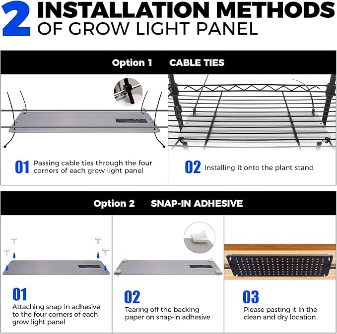 • Combination of 180cm High Grow Shelf and plant Light: 15.7"L x 11.8"W x 70.9"H 6-tier plant stand and 5-pack 50W (5 x 10W) Ultra-Thin plant light panels. Suitable for growing or displaying your indoor plants. It's a professional full spectrum grow lights for indoor plants, seed starting, hydroponics, succulents, flowers, Veg & More