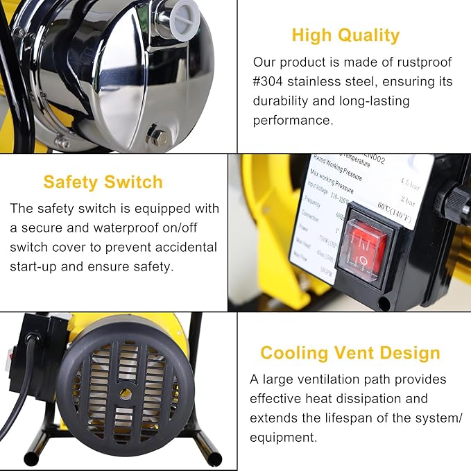 • 【Wide Applications】The electric water pump is ideal for sprinkler systems, irrigation, water transfer for daily use, drawing water from shallow wells, ponds, lakes, rain barrels, water tanks, etc.