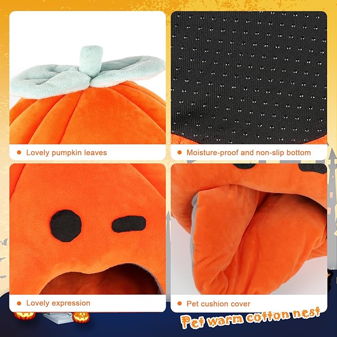 • Lovely pet house: This small animal hideout is designed with a unique pumpkin, non-skid bottom surface prevents the bed from shifting and moving when your pet steps on or off, even on hardwood floors; It's fit for daily use or great halloween gift for your furry friend