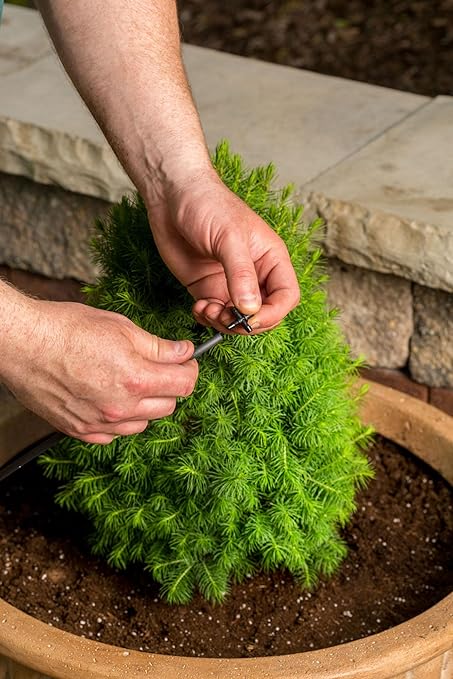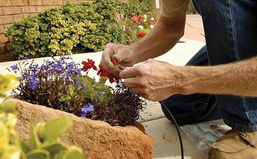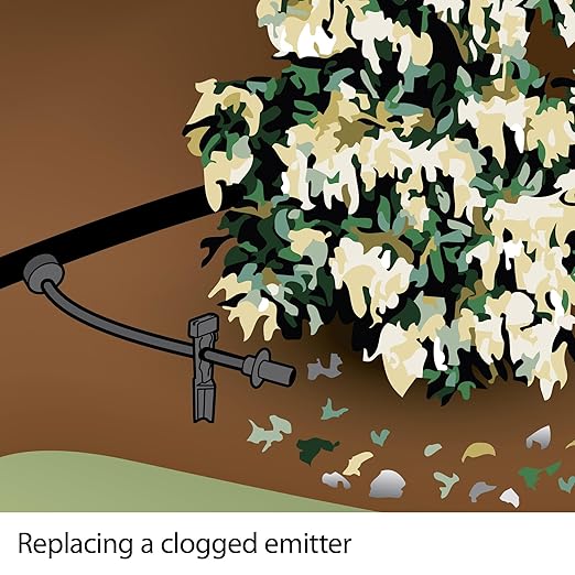 • Components: 100’ of 1/4" distribution tubing, Emitter Install/Removal Tool, Emitters (10) 0.5 GPH, (20) 1.0 GPH, (10) 2.0 GPH, (10) tubing stakes w/bug cap, (20) barbed couplers, (20) barbed tees, (10) tubing plugs, Install guide with tips