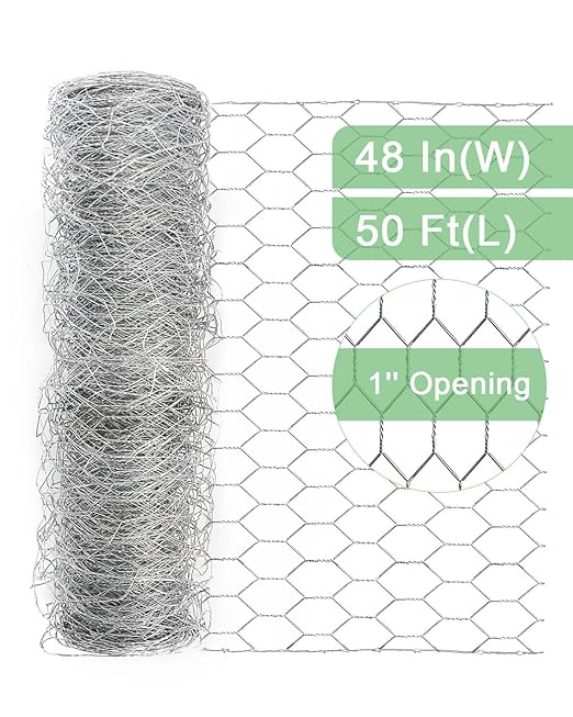 • Lightweight & Sturdy: This 48 " × 50 ' chicken wire. Double twist braid and the material of galvanized iron wire keep it sturdy.