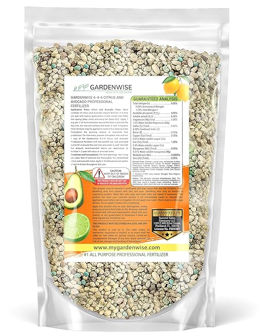 • 🍋 Grows Delicious Fruits: With a balance of 6% nitrogen, 4% phosphorus and 6% potassium, Gardenwise’s 6-4-6 Citrus and Avocado Professional Fertilizer nourishes your indoor and outdoor trees with a high-quality blend of nutrients. You’ll love the incredible flavors!