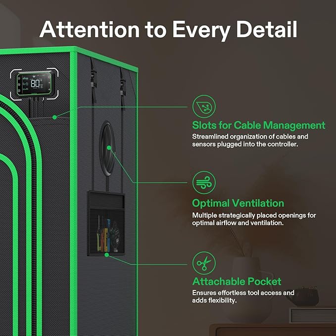 • Thoughtfully Designed: Enjoy a tidy and organized environment with cable management slots tailored for your smart controllers; Experience optimal ventilation through strategically placed openings and effortless tool access with the attachable outside pocket