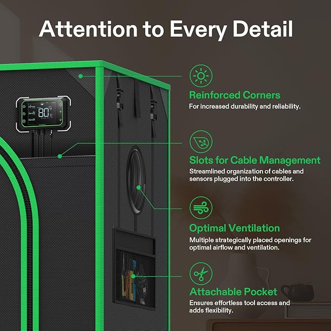 • Upgraded Lightproof Fabric: Durable 2000D Oxford canvas lined with plant-friendly PE and 100%-reflective Mylar; The three-layer thick fabric ensures zero light leaks, boosting the output efficiency of your setup; Zipper section is designed with black inner lining for enhanced light prevention