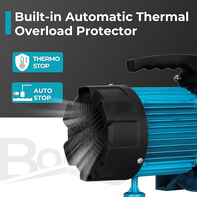 • Installation and Operation Guidance: For optimum function, place the garden pump in a clean, dry, and ventilated space. Prior to use, remember to prime the shallow well jet pump to prevent damage to its seal and impeller