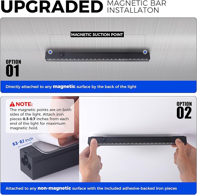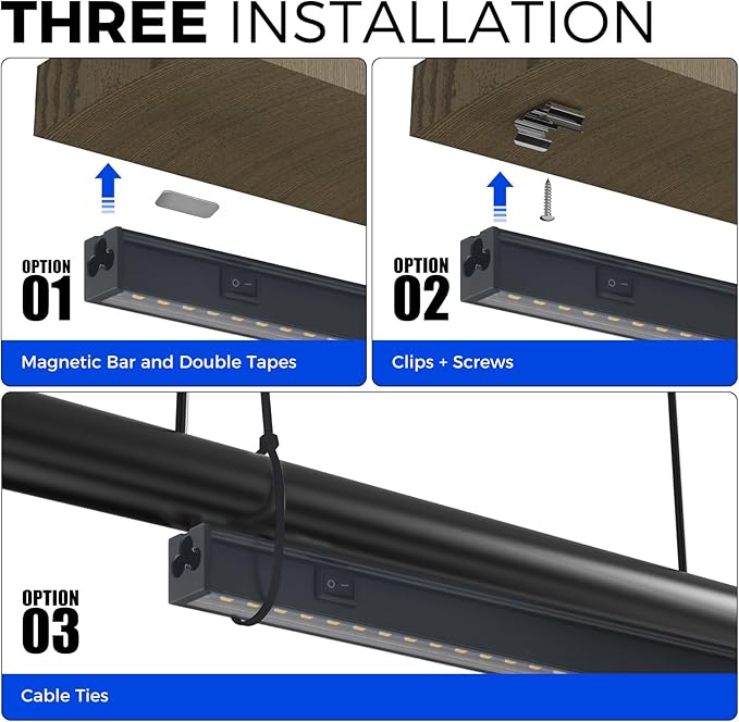 • Easy Installation: With included clips, cable ties, magnetic bar with double-sided tapes, you could install this indoor plant light by yourself in minutes. Our under cabinet grow lights can be directly attached to any magnetic surface and any non-magnetic surface. Plug and play, and you could link up to 16 lights in a series, saving your time