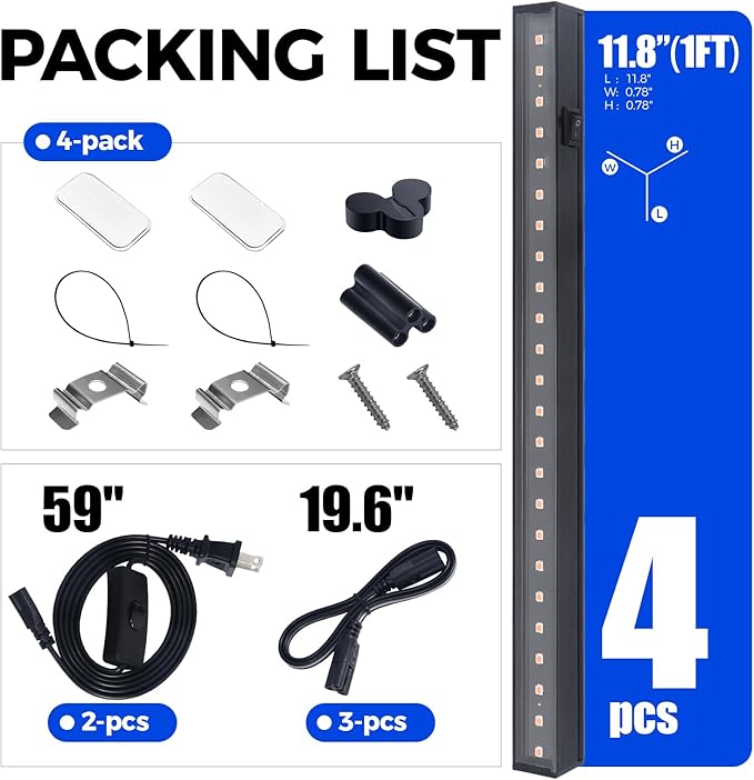 • Super Bright and High PPFD: Pinkish white grow light 1ft consuming only 20W (4x5W, 4-pack) with 96 LEDs totally, replace 120W general plant lights. Over 95% light energy can be absorbed by plants. It is a great option for plants that in seedling, vegetative and flowering cycle