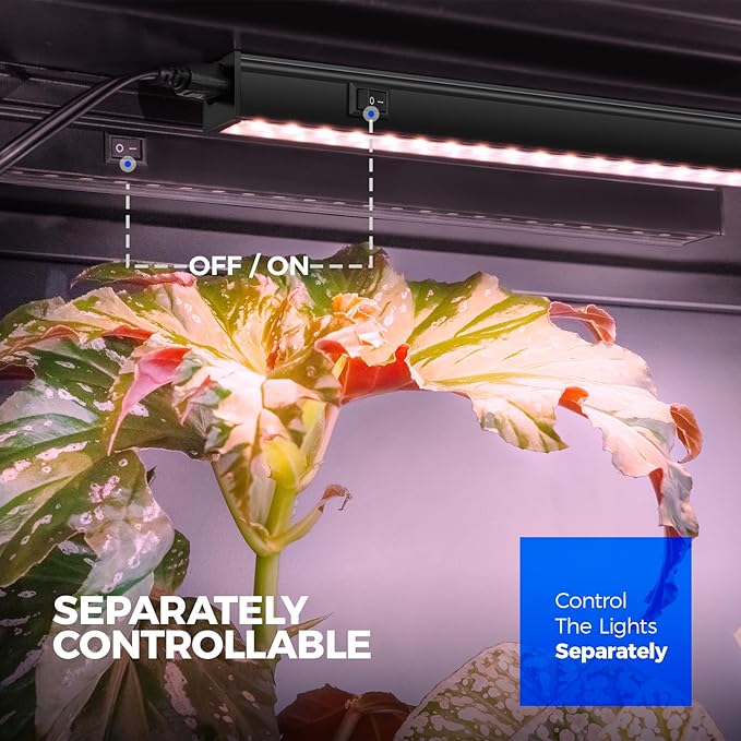 • Separately Controllable: Each grow light have on off switch on the surface of housing, controlling the lights separately or together according PPFD that plants need