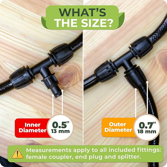 Make your own garden watering system easier than ever: use the Carpathen Female Fitting for Irrigation Tubing to connect the 1/2 inch drip irrigation tubing (0. 70" OD x 0.50" ID) to any standard 3/4" (0.650" OD) garden faucet, hose bibb, or garden hose. Customize your garden irrigation system with the 1/2 tubing t shape barbed tubing splitter. Install the hose end cap on the other end of the Carpathen 1/2 tube and prevent water from flowing out. Enjoy healthier plants with less cost and work!