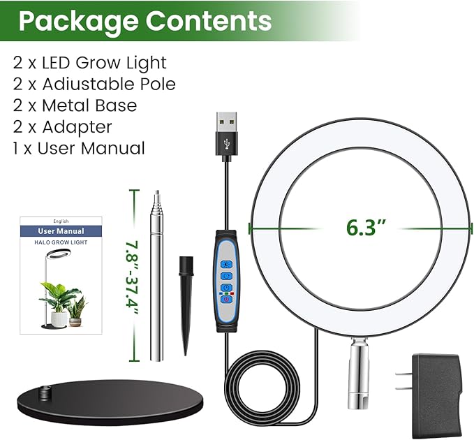 • Two Installation Method: This plant light can be inserted into the soil or placed on the table. 6.3in metal base and non-slip pads to ensure the stability of the table, and is equipped with 9.8 to 37.4in adjustable pole, or inserted ABS sharp to the soil.
