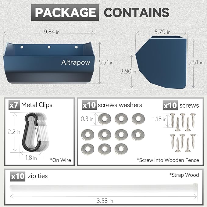 • EASY TO INSTALL AND CLEAN: We will provide three hanging methods of clips, nylon ties and screws for you to install the feed troughs. The feed trough can be hung on the wire fence or mounted on the wall or wood fence. And you only need to use a brush and water to clean the fence feed trough.