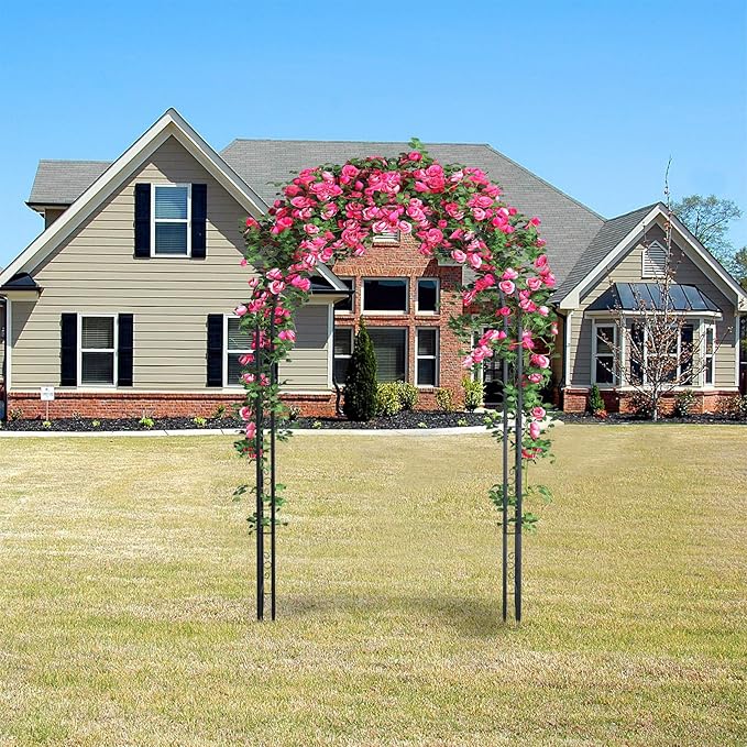 • 【A Plant Climbing Base】Featured with a mounting-plant-friendly shape, your vines, foliage, roses will happily find themselves flourish and bloom on this arch pergola.Straight standing arbor with lush green and intoxicating flowers on it, just can’t find anything better than this pastoral decoration.Whether It is Sunny or Rainy and Windy, It is Very Firm.