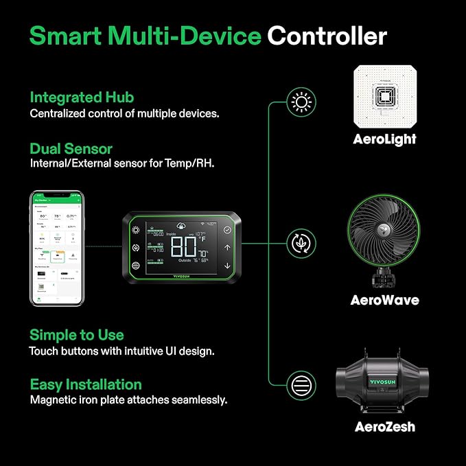 • Smart Grow with GrowHub E42A: With a built-in temp and humidity gauge and one probe, the GrowHub E42A Controller monitors changes in both the internal and external environment including VPD; WiFi connectivity and app control allow you to access real-time data and remotely manage equipment from anywhere
