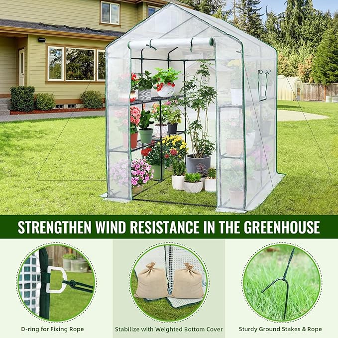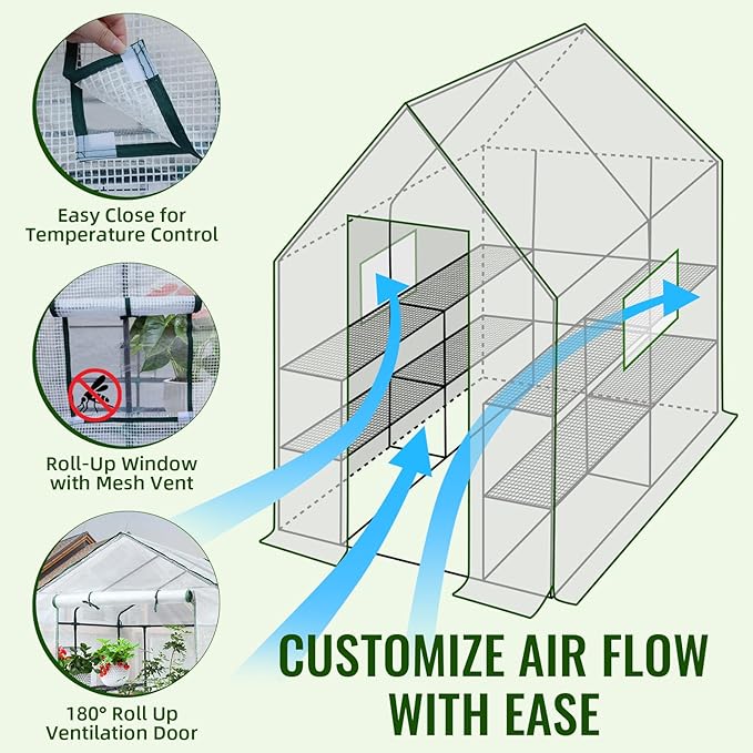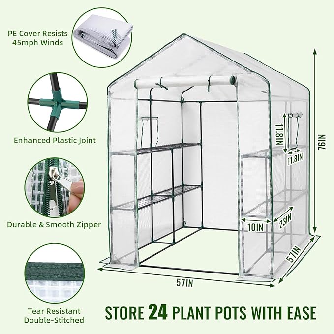 • Excellent Greenhouse for Plants Growth: No longer worry about winter cold, rainstorms, rodents, or insects. Greengro green house provide an enclosed space for plants to thrive, featuring a high-quality frame, thick polyethylene cover, sturdy zippered door, and screened windows. This greenhouses regulates external airflow, effectively controlling temperature and moisture levels, creating an excellent growing environment for potted plants and seeds in all seasons
