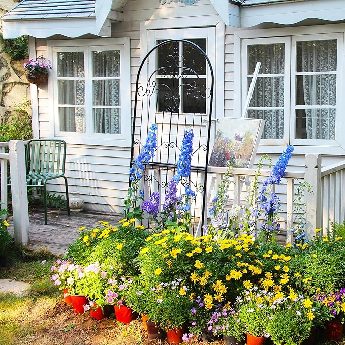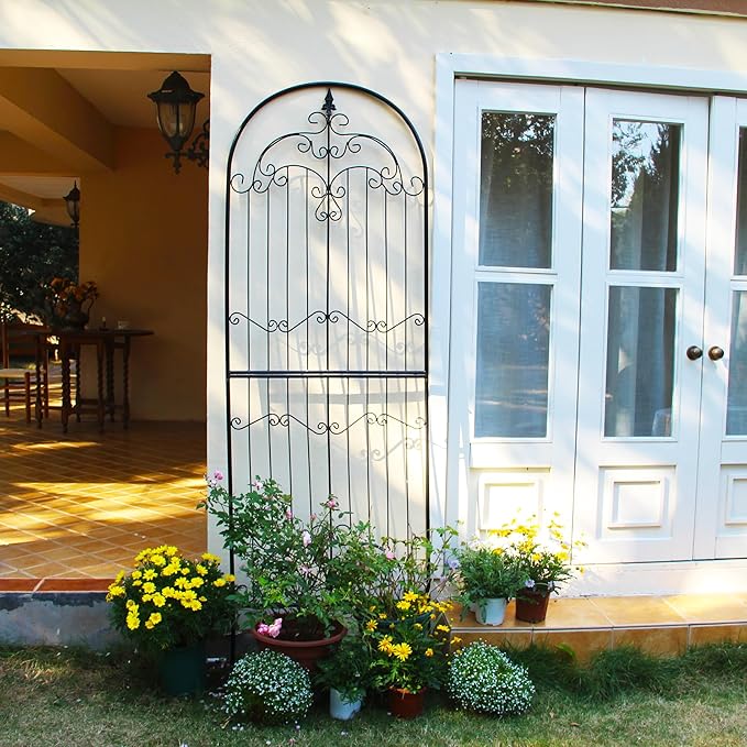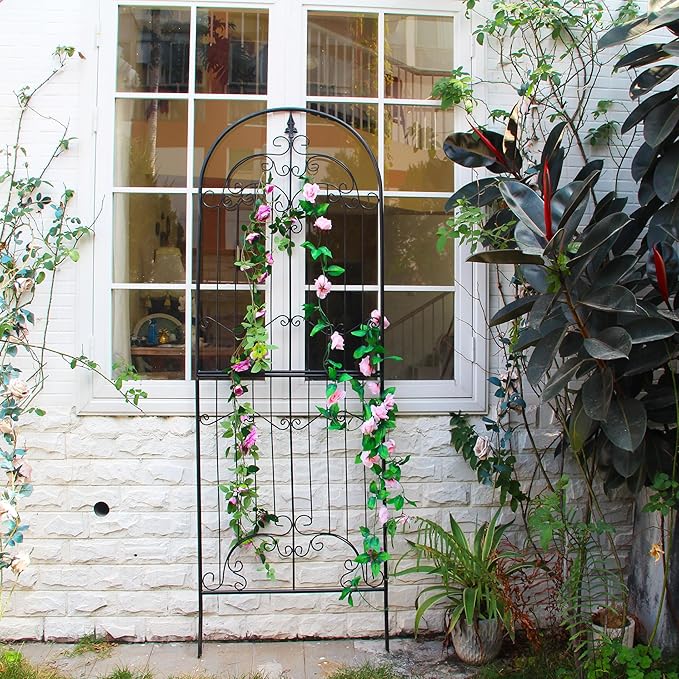 • Enduring and Weather-Resistant: Crafted from rustproof, high-quality iron with a sleek black powder-coated finish, this plant trellis offers sturdy support for a variety of climbing plants and vines. With dimensions of 86.6" H x 29.5" W and a net weight of 14.3 LB, each package includes a single garden trellis.