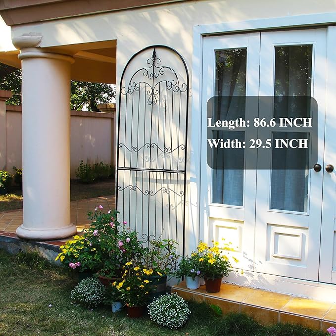 Trellis for Climbing Plants 86.6" H x 29.5" W Tall Garden Trellis Wrought Iron Heavy Scroll Metal Decoration Lawn Patio for Rose Clematis Ivy Weather Resistant