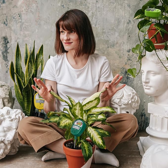 • 🌻【4-in-1 Multi-Function】- This soil meter for plants can meet your needs to measure soil moisture, Ph, nutrients, and light conditions at the same time. The 4-in-1 soil moisture meter indoor plants is much more cost-effective than traditional single-function soil testers, and you only need to buy one to enjoy all four services. It helps you to fully understand your plants.