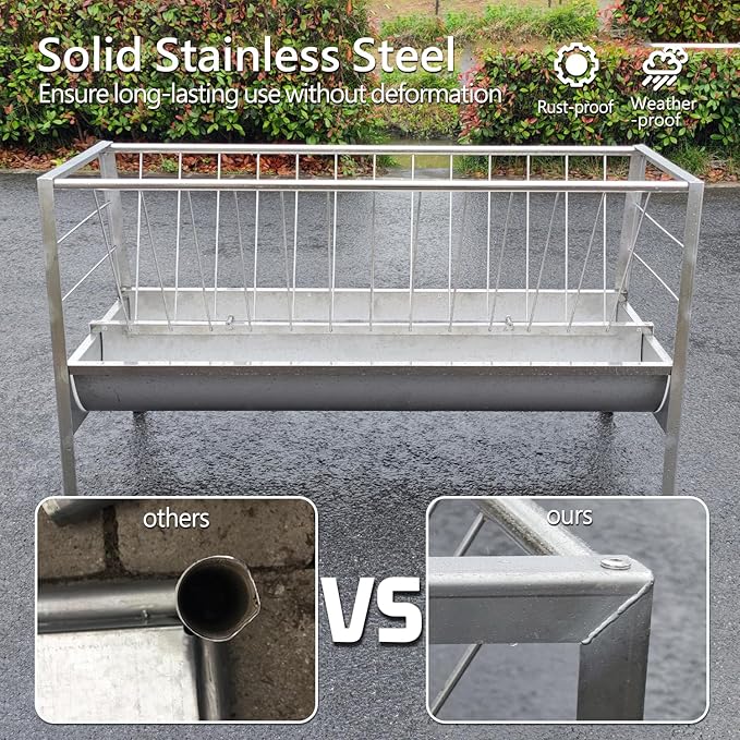 Stainless Steel Pasture Feeder, 5-Feet, 77 Gallon Capacity Livestock Feeder with Deeper Feeding Pan, Easy to Assemble and Carry, Feeding Goats, Sheep and Ponies, for Farms, Sheep Sheds