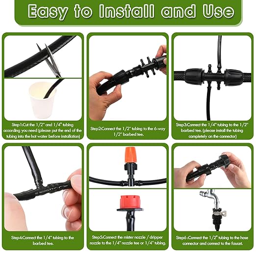 • Large Drip Irrigation System - Use our irrigation set to take care of your plants: 20FT 1/2" + 50FT 1/4" irrigation tubing can water all plants at once. After simple installation, the large irrigation kit can irrigate an area of 110 square feet.