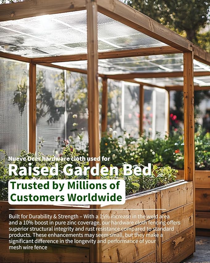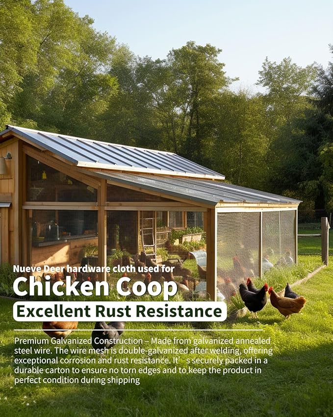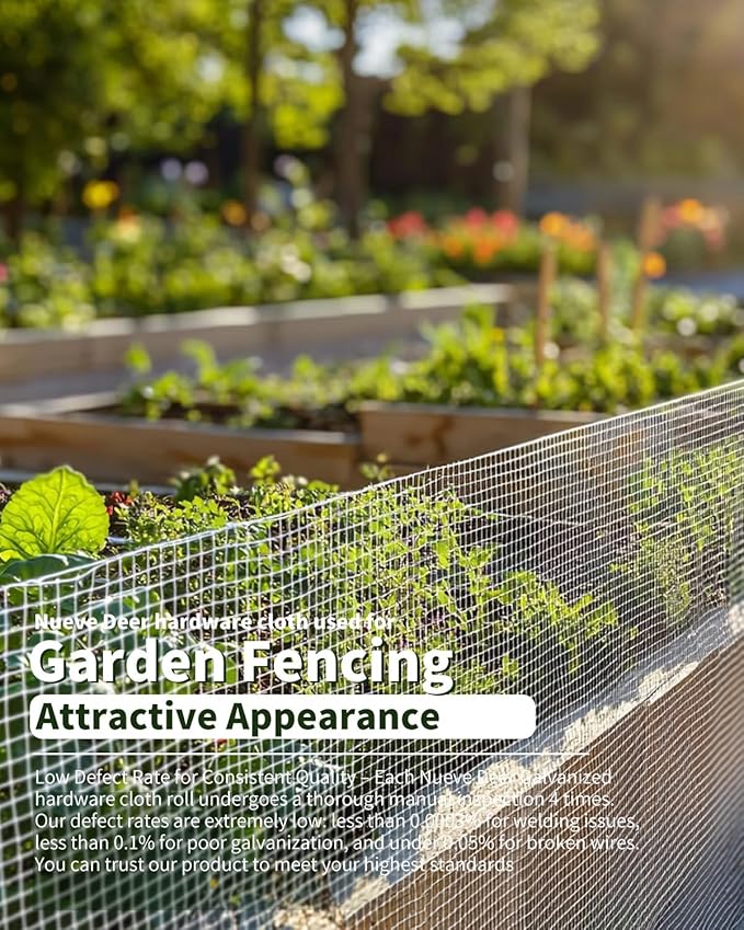 • Nueve Deer hardware cloth fencing features a 1/4-inch x 1/4-inch square opening and measures 48 inches x 100 feet (1.22m x 30.5m). Made from high-quality annealed steel wire, it is galvanized after welding to provide superior rust and corrosion resistance. Perfect for outdoor use and designed to last for years, even in harsh conditions