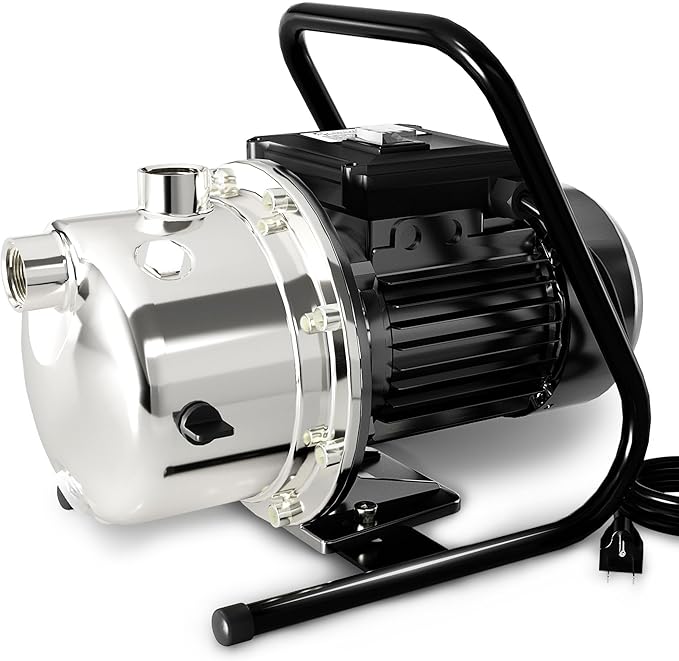 LANCHEZ 1.2 HP Portable Shallow Well Garden Pump, 1828 GPH Stainless Steel Sprinkler Pump, 115V Water Transfer Draining Irrigation for Lawn