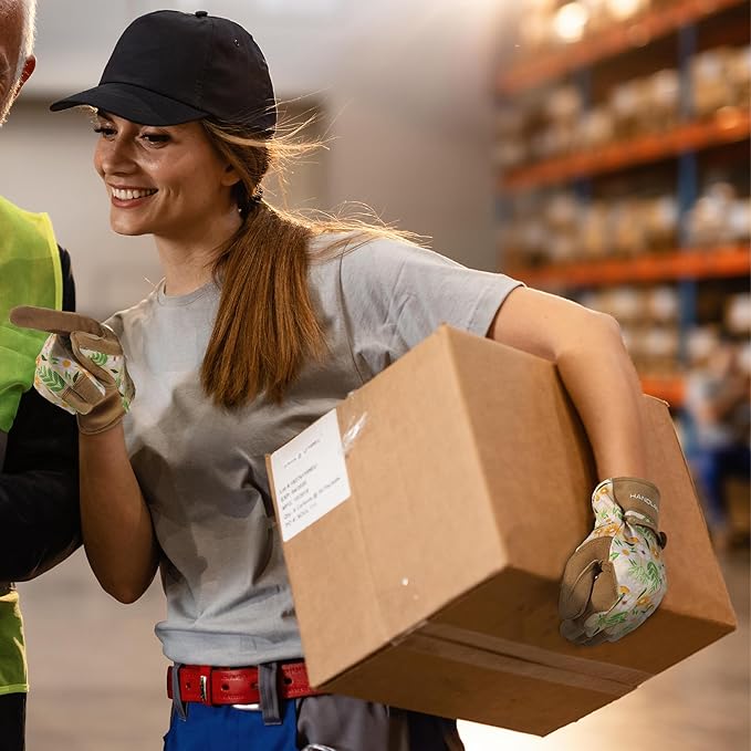 HLDD HANDLANDY Work Gloves for Women and Ladies, Leather Gardening Gloves Flexible Mechanic Working Gloves
