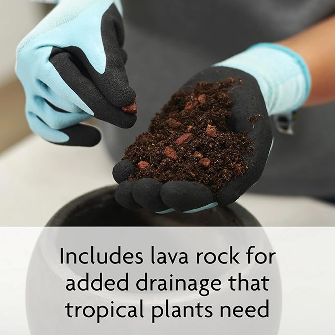 • Miracle-Gro Tropical Potting Mix feeds plants for up to 6 months and is specially formulated to include lava rock for added drainage that tropicals need
