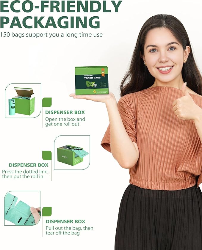 • Certified Small Compostable Bags: Rest assured with AYOTEE's compost bin bags that meet ASTM series compostable standards. By choosing these certified small compostable trash bags, users are actively helping to reduce plastic use and minimize land and ocean pollution