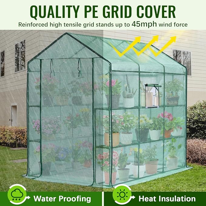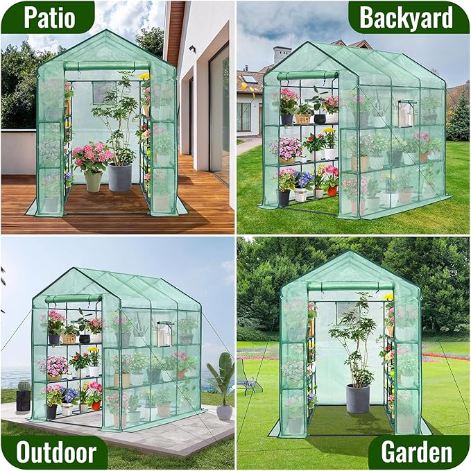 • Excellent Greenhouse for Plants Growth: No longer worry about winter cold, rainstorms, rodents, or insects. Greengro green house provide an enclosed space for plants to thrive, featuring a high-quality frame, thick polyethylene cover, sturdy zippered door, and screened windows. This greenhouses regulates external airflow, effectively controlling temperature and moisture levels, creating an excellent growing environment for potted plants and seeds in all seasons