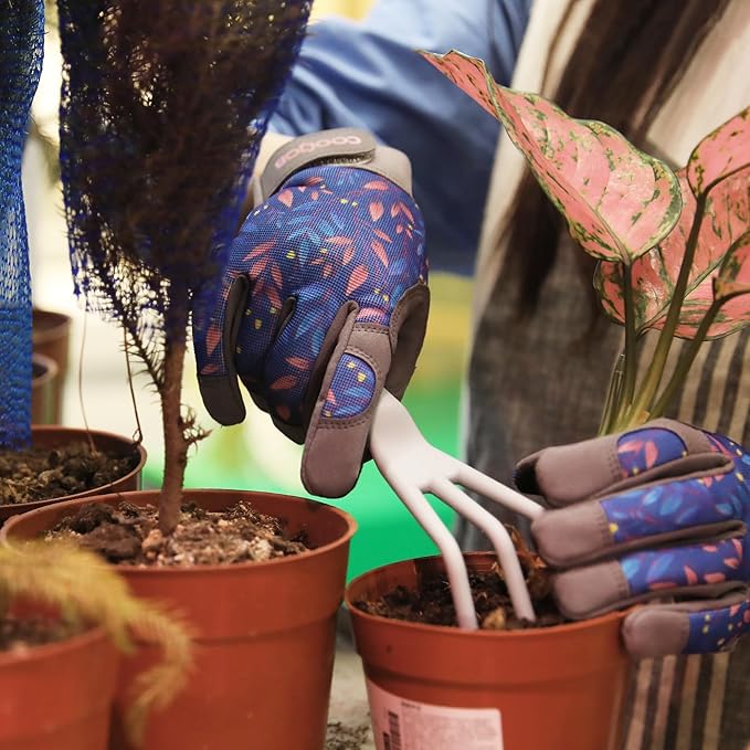 COOLJOB Small Gardening Work Gloves for Women Ladies, Thorn Proof for Rose Pruning, Cactus Handling, Blackberry Bush Planting, Puncture Resistant Anti-Slip Flexible, 1 Pair S Blue Flower